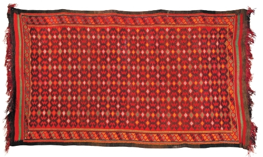 Алаша. 1950. Чимкентская обл. Народный мастер Жуманазарова Бубзауре. Шерсть, ткачество кежим теру. Р. 177х360 1
