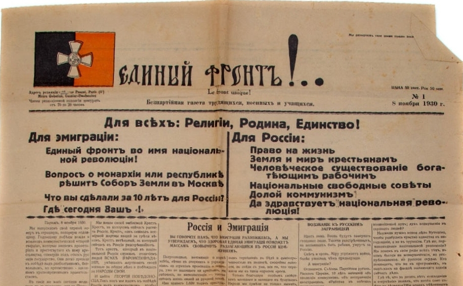 Газета «Единый Фронтъ!..». Издавалась в Париже в 1930-1936 гг.