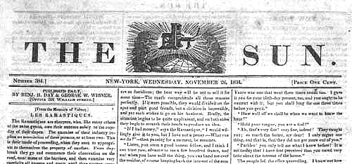 Газета The Sun («Солнце»). Издавалась  с 1833 по 1950 год